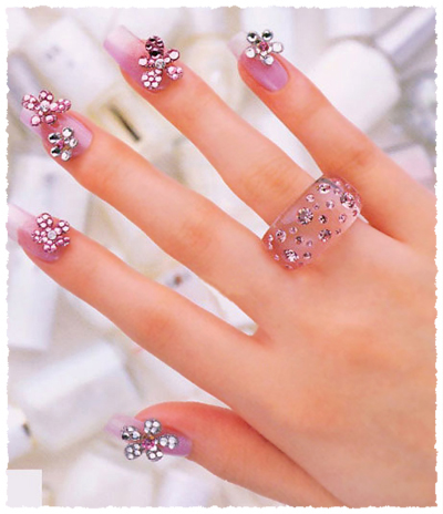 | Very Nice Flower Design Rhinestone Nail Art With Ring |